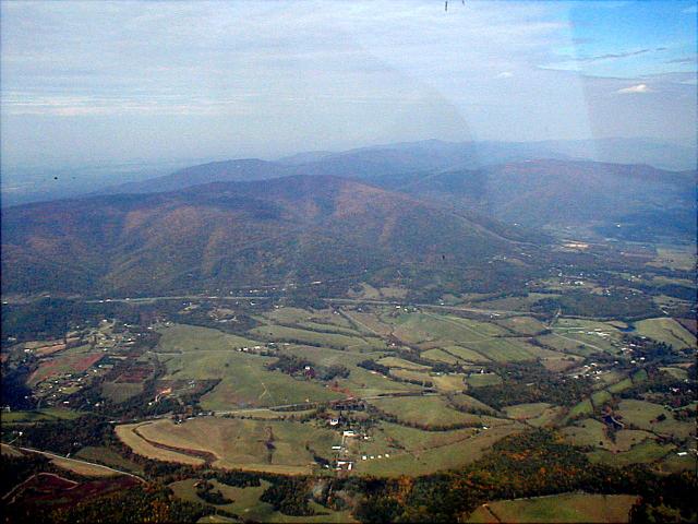Waynsboro is just west of the pass, and I hit it right on the button--but then couldn't spot the airport. Finally zoomed in on it with the GPS moving map and found that I was directly above it. The runway is a lot smaller than any of the roads in the area and is situated in mixed terrain--interstates, houses, woods, pastures, all jumbled together.